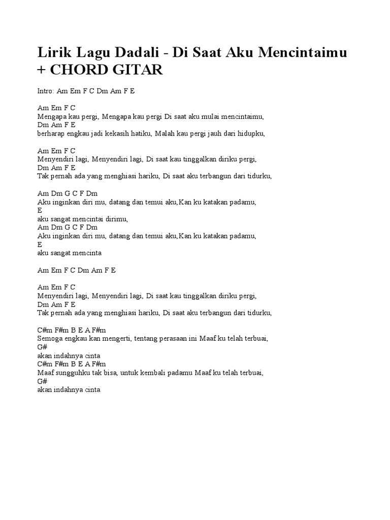 Dadali Disaat Aku Mencintaimu Lirik Chords Chordify