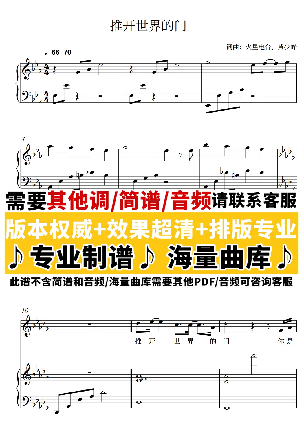 推开世界的门 简谱 搜谱网